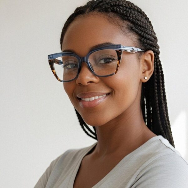 Debbie es una montura estilo ojo de gato, en material acetato con una combinación bicolor que le añade un auténtico toque chic y encantador. ¡Perfecta para elevar cualquier look!