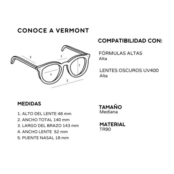 Vermont es una montura circular unisex, está fabricada en Tr90, con bisagras metálicas. ¡Usala si eres amante de los estilos retro!